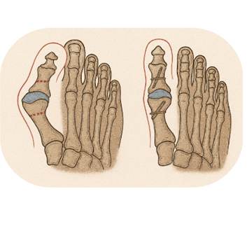 Une ostéotomie d’Akin peut être réalisée au niveau de la phalange proximale du gros orteil pour corriger une déviation résiduelle.
