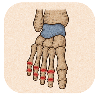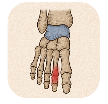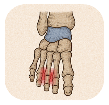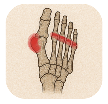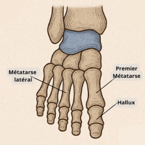 - Métatarsalgies : Le gros orteil ne supportant plus correctement le poids du corps, les autres orteils compensent, ce qui peut provoquer des douleurs sous les têtes des métatarsiens.