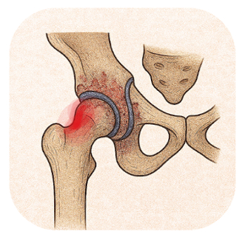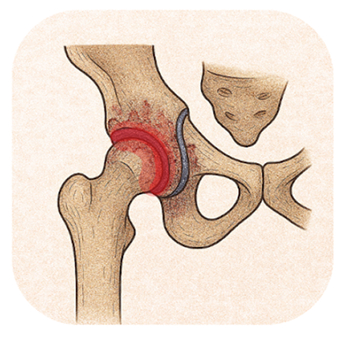 Le conflit de hanche, ou conflit coxofémoral, est une affection due à des anomalies anatomiques qui provoquent un contact anormal entre l’os du bassin (coxal) et celui du fémur. Ce frottement répété peut entraîner des micro-traumatismes, causant des lésions du labrum acétabulaire (les "ménisques" de la hanche) ou du cartilage, et dans certains cas, favoriser l’apparition d’une arthrose précoce appelée coxarthrose secondaire à un conflit coxofémoral.